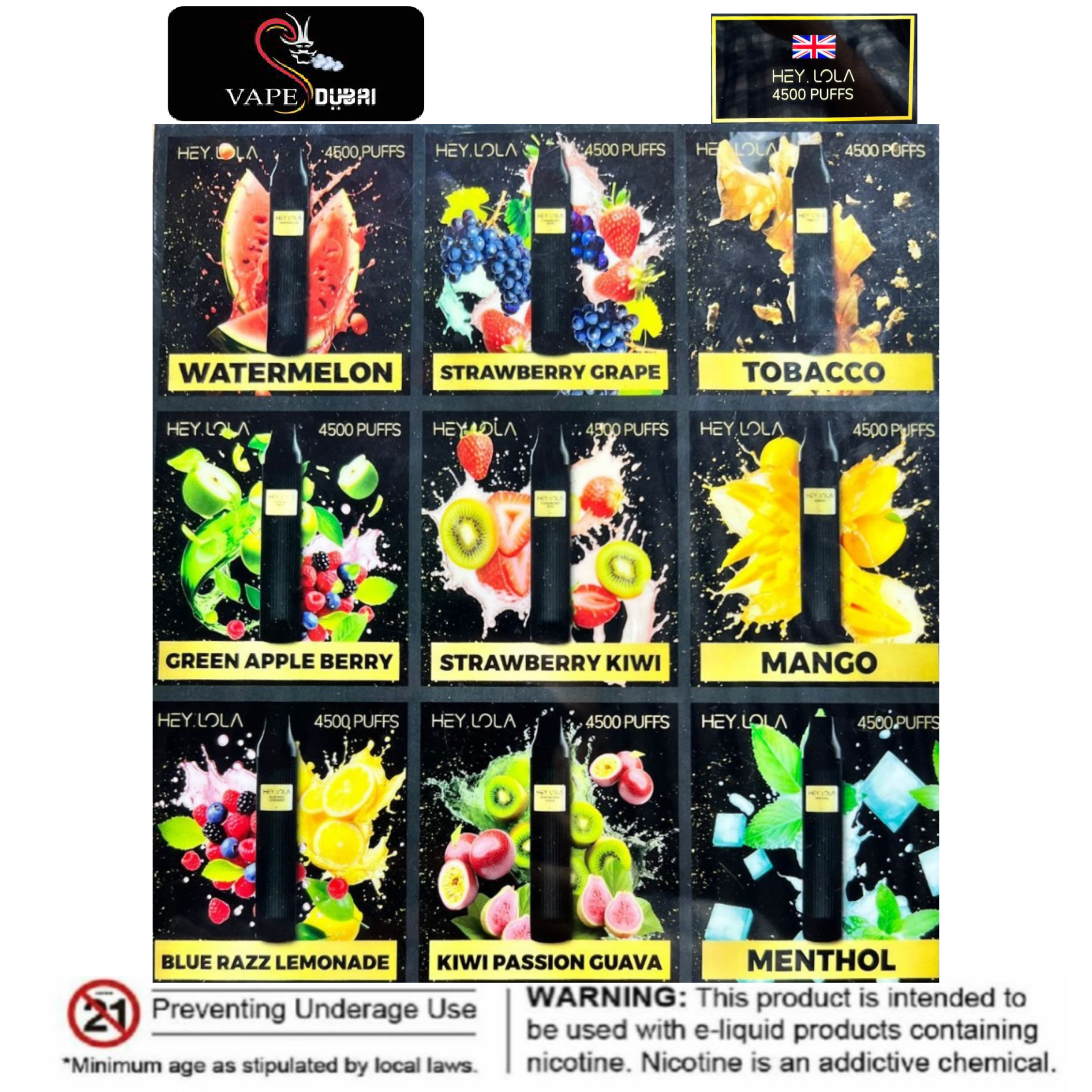 Flavors of Hey Lola 4500 Puffs