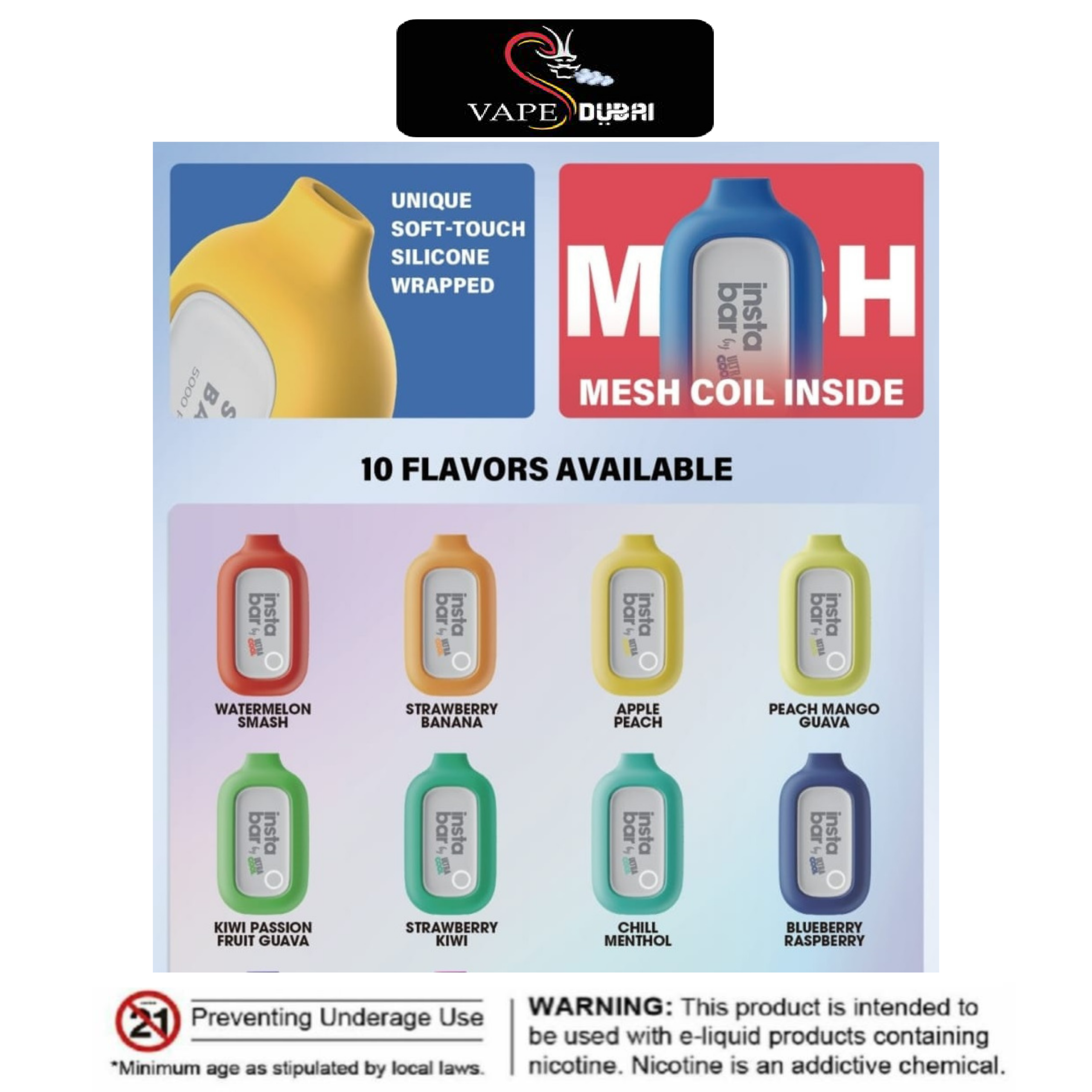 Instabar 5000 offers a wide range of flavors, from refreshing menthol to luscious fruits, all crafted to perfection. The ergonomic build ensures a comfortable grip, and the device’s compact size makes it ideal for on-the-go enjoyment.